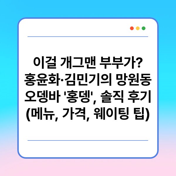 최근 개그맨 부부 홍윤화와 김민기가 운영하는 망원동 오뎅바 '홍뎅'이 많은 사람들의 관심을 받고 있습니다. 이곳은 그들의 유머 감각과 특유의 매력을 담아낸 메뉴로 가득 차 있으며, 많은 이들이 방문 후 솔직한 후기를 공유하고 있습니다. 본문에서는 '홍뎅'의 메뉴, 가격, 웨이팅 팁 등을 자세히 소개하겠습니다. 또한, 이곳의 인기 비결과 실제 방문한 사람들의 후기를 통해 신뢰할 수 있는 정보를 제공하겠습니다. 궁금증을 해소하기 위한 여러 내용을 정리하였으니 참고하시기 바랍니다.
