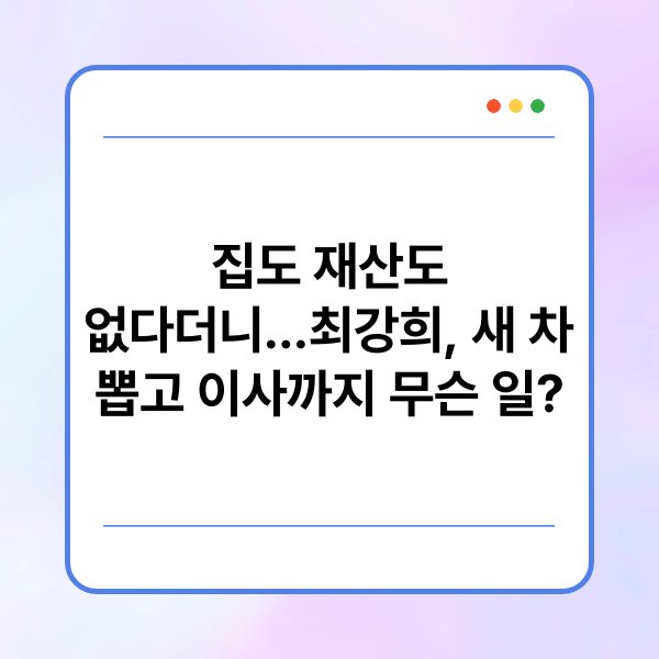 최근 최강희가 새 차를 구매하고 이사한 사실이 알려지면서 많은 관심을 받고 있습니다. 그동안 "집도 재산도 없다"는 발언이 있었던 만큼, 이러한 변화는 팬들 사이에서 큰 화제를 모으고 있습니다. 본 글에서는 최강희의 최근 동향과 관련된 정보를 정리하였습니다. 또한, 이사와 차량 구매의 배경, 팬들의 반응 등을 살펴보겠습니다.